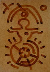 alle Arbeiten wurden mit Erdpigmenten in Kaseinbinder auf einem besonderen, selbst hergestellten halbtransparenten Papier ausgeführt. die Abbildungen sind durchleuchtet.