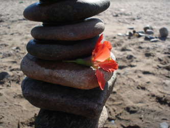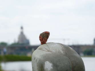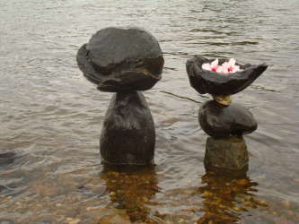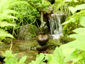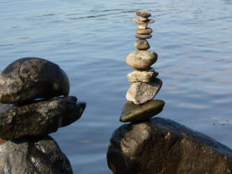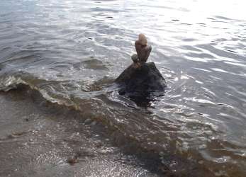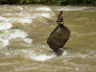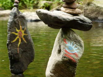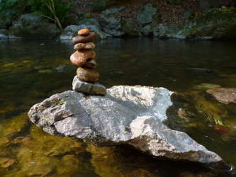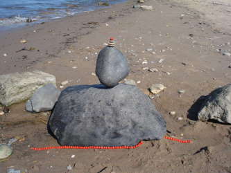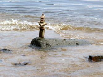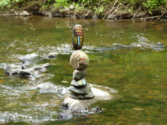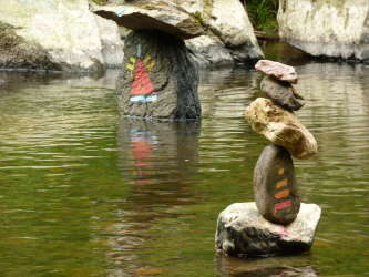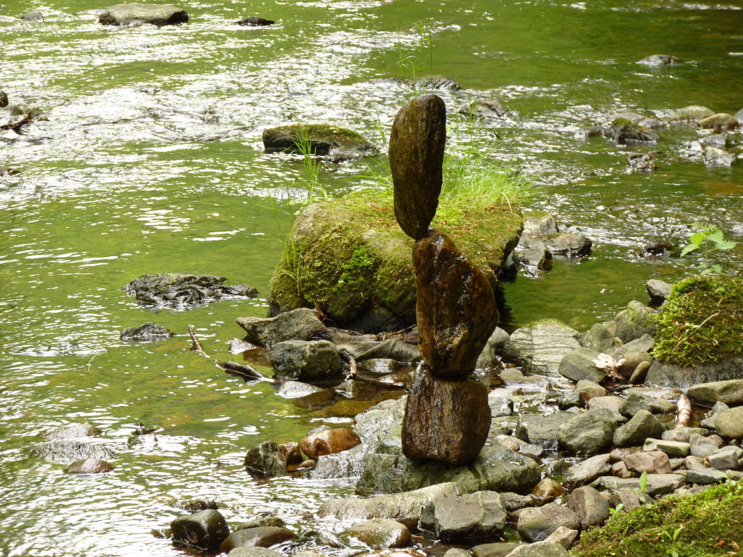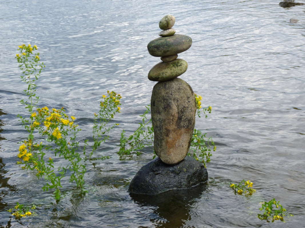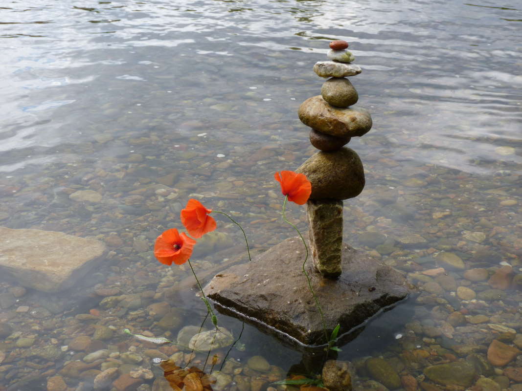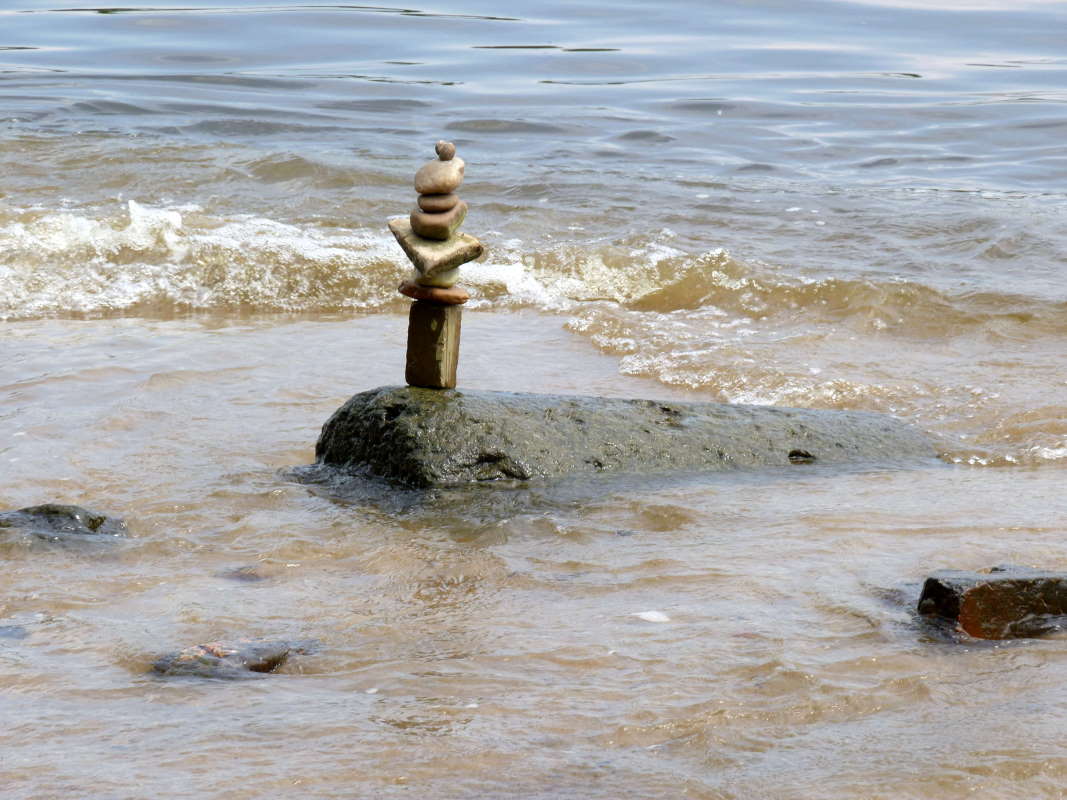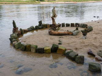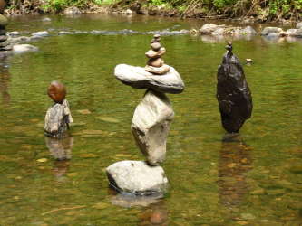 "Wächter" nenne ich die Plastiken aus Geröllsteinen, die ich an der Elbe oder an der Roten Weisseritz (Rabenauer Grund) gefunden habe und die ohne Hilfsmittel (Klebstoffe, Konstruktionen ...) ausbalanciert stehen. Ich wurde einmal gefragt, weshalb ich sie "Wächter" nenne, obwohl sie von einem starken Windstoß oder Wellen umstürzen können: Sie erinnern die Vergänglichkeit des Lebens und fordern uns zu Achtsamkeit auf. |