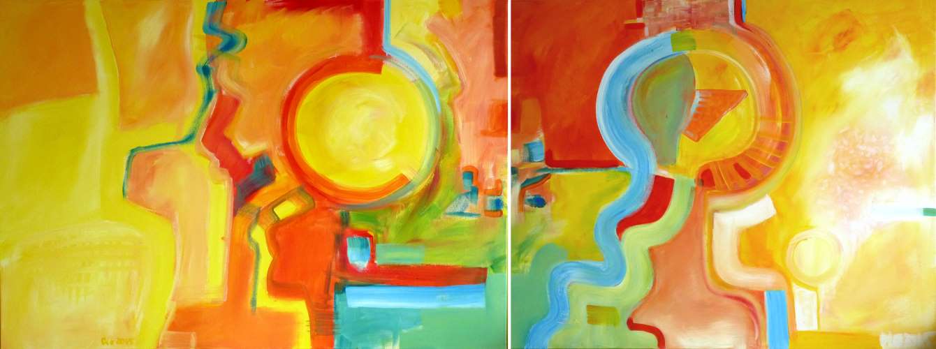 Zwei Teile eines Triptichons ... ohne titel ... acryl auf leinwand - 90 x 370 cm (bild im flur des kreißsaales)